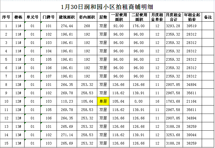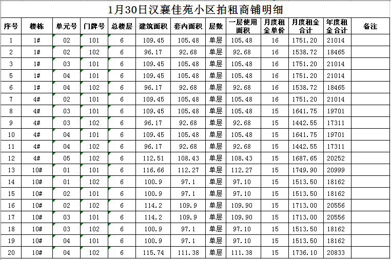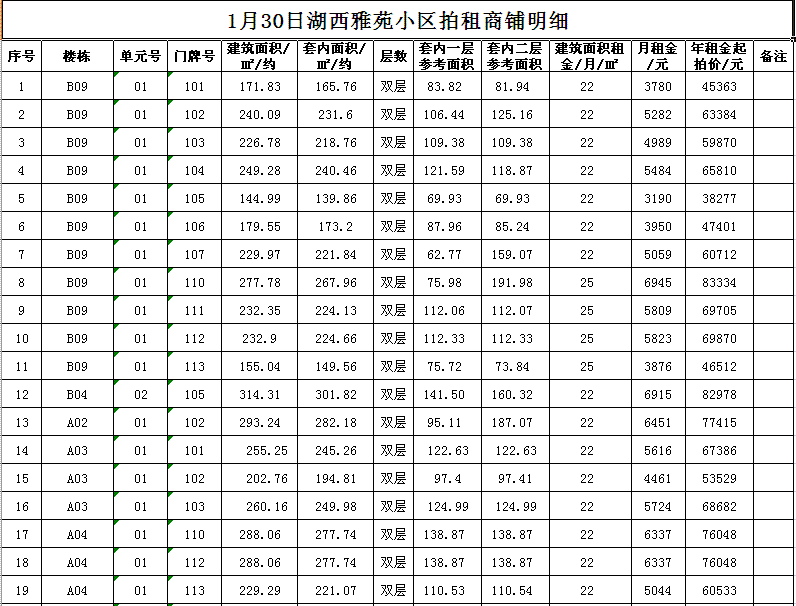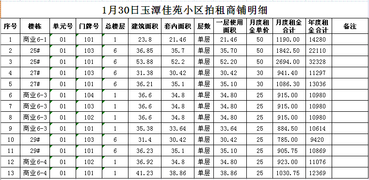 關注微信公眾號我公司受委托,定于2018年1月30日10時在本公司拍賣廳對以下小區(qū)門面房進行公開拍租: