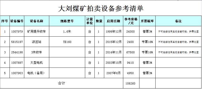 關注微信公眾號我公司受委托,定于2018年7月25日10時在徐州市中山南路55號副樓三樓本公司拍賣大廳公開拍賣:徐州市大劉煤礦、柳新煤礦的二手設備一批。