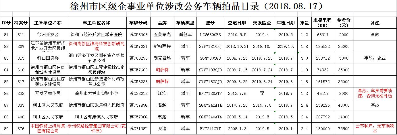 一、拍賣(mài)標(biāo)的:徐州市企事業(yè)單位改革公務(wù)車(chē)輛(詳見(jiàn)每期拍品目錄)。