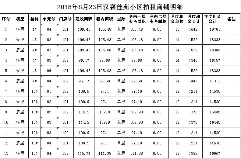關(guān)注微信公眾號我公司受委托,定于2018年8月23日10時在中山南路55號本公司拍賣廳對以下小區(qū)商鋪公開拍租:湖西雅苑、和風雅致、漢襄佳苑、尚景園、潤和園、嘉和雅苑等。商鋪共數(shù)十套,均為空房,面積分別為一百至數(shù)百平方米不等。租期均為3年。