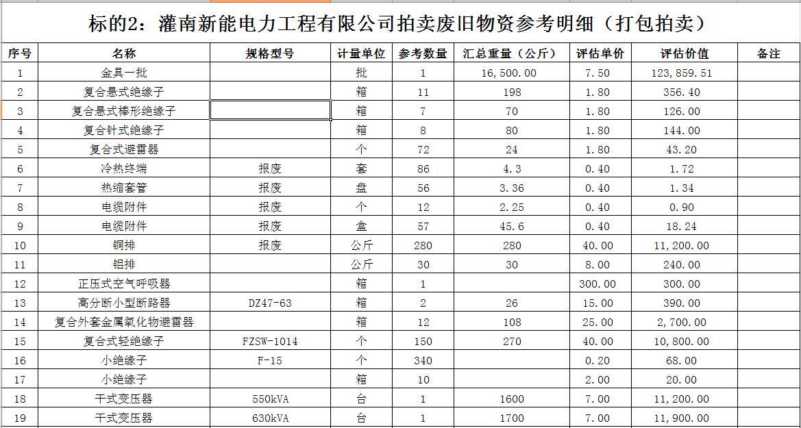 拍賣標的主要包括:鐵塔、角鋼塔、鋼管桿、鋼芯鋁絞線、電纜、變壓器、金具等。
