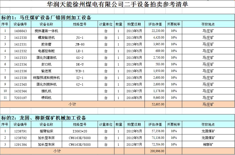 關(guān)注微信公眾號(hào)我公司受委托,定于2018年9月18日10時(shí)在徐州市中山南路55號(hào)副樓三樓本公司拍賣(mài)大廳公開(kāi)拍賣(mài):徐州市馬莊煤礦、大劉煤礦、龍固煤礦、沛城煤礦、柳新煤礦的二手設(shè)備一批。