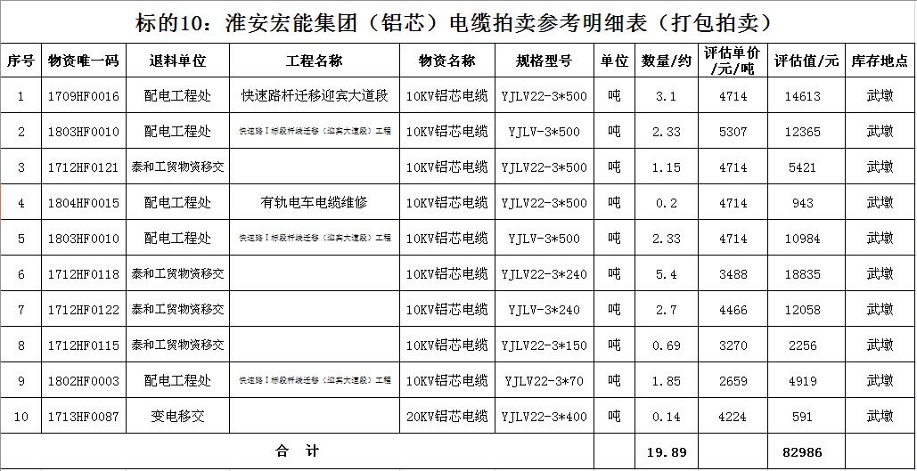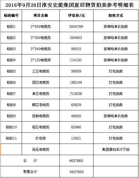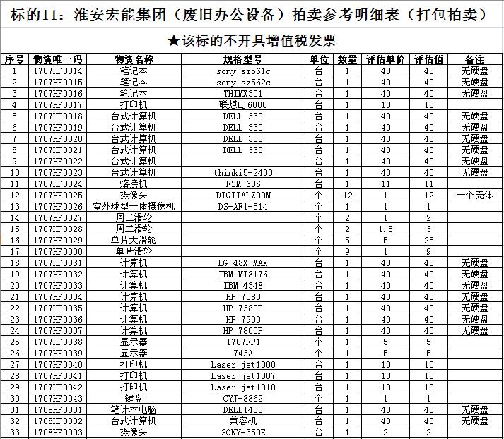 關(guān)注微信公眾號(hào)受淮安宏能集團(tuán)有限公司委托,我公司將通過中國拍賣行業(yè)協(xié)會(huì)網(wǎng)絡(luò)拍賣平臺(tái)以網(wǎng)絡(luò)競價(jià)的方式公開拍賣廢舊物資一批,主要包括:各型電纜,計(jì)算機(jī)、打印機(jī)等辦公用品(詳見拍品目錄)。