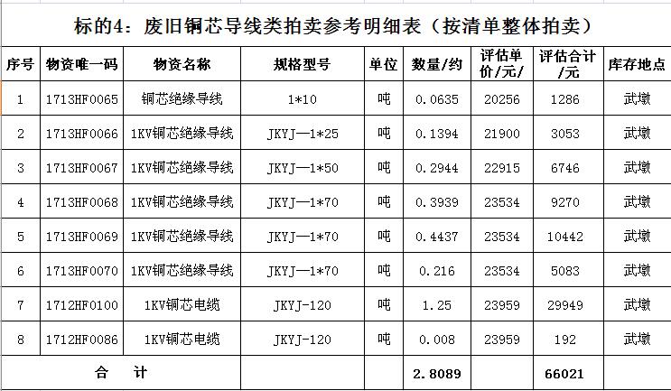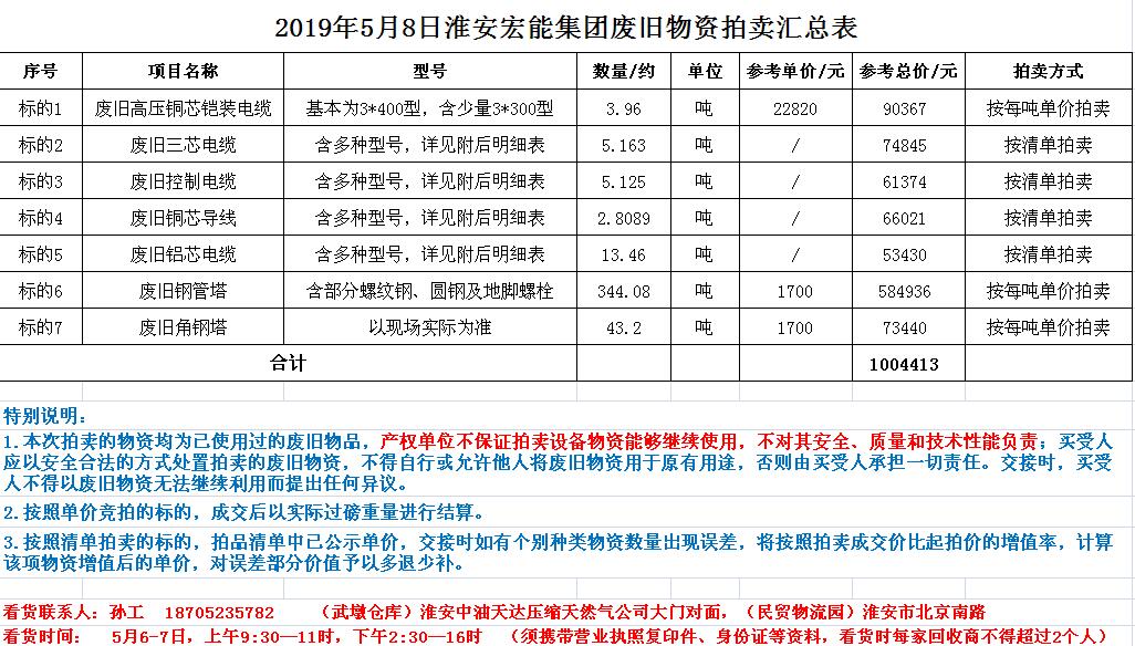 關(guān)注微信公眾號(hào)受淮安宏能集團(tuán)有限公司委托,我公司將通過(guò)中國(guó)拍賣行業(yè)協(xié)會(huì)網(wǎng)絡(luò)拍賣平臺(tái)以網(wǎng)絡(luò)競(jìng)價(jià)的方式公開(kāi)拍賣以下廢舊物資,主要包括:高壓銅芯電纜、控制電纜、銅芯導(dǎo)線、鋁芯電纜、角鋼塔、鋼管塔等。