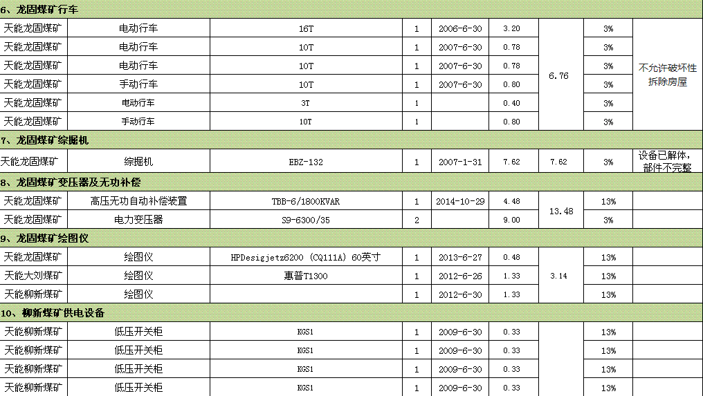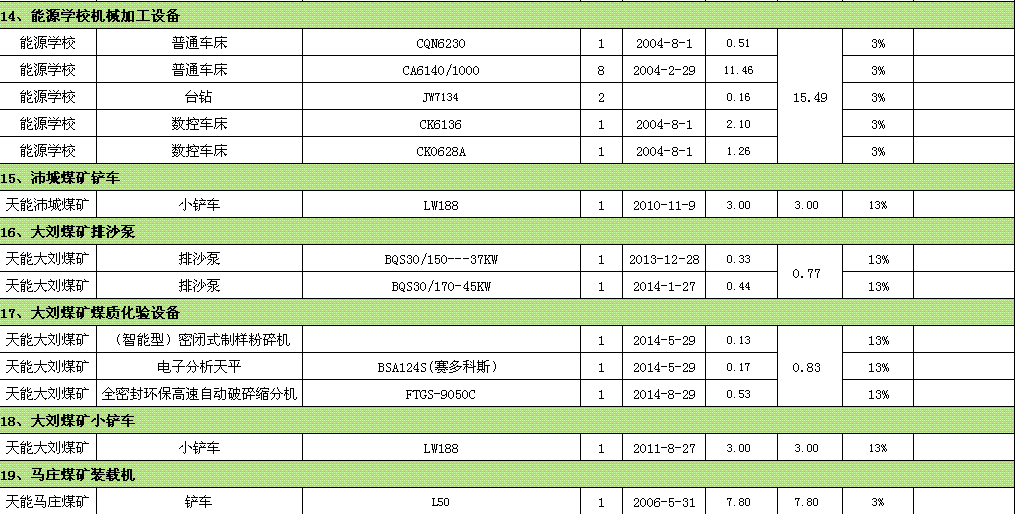 裝載機、鉆床、車床、提升機、壓風(fēng)機、行車、綜掘機、變壓器、開關(guān)柜、鏟車汽車衡、測量設(shè)備等。