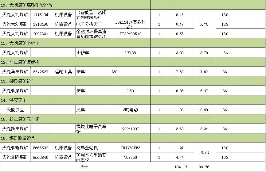 裝載機(jī)、通風(fēng)機(jī)、綜掘機(jī)、變壓器、鏟車、叉車、排沙泵、汽車衡、繪圖儀、救護(hù)設(shè)備、機(jī)械加工設(shè)備、測量設(shè)備等。