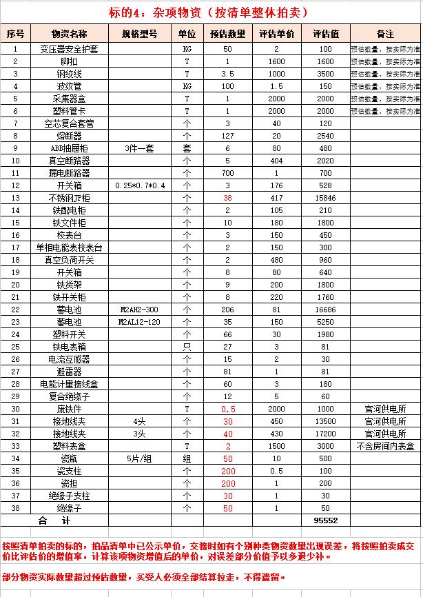 1、連云港怡能電力建設(shè)工程有限公司廢舊物資。主要包含:廢舊鋁芯電纜、金具、電纜盤(pán)、雜項(xiàng)物資等。(保證金10萬(wàn)元)